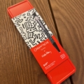 Boîte en métal rouge collector signée du logo du partenariat et fourreau habillé de l’identité de la collection – motif iconique de Keith Haring et rouge Caran d’Ache