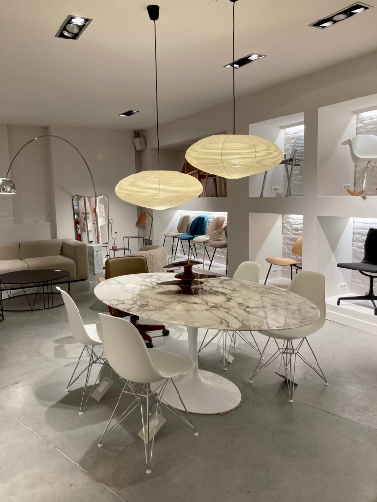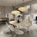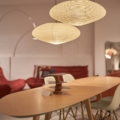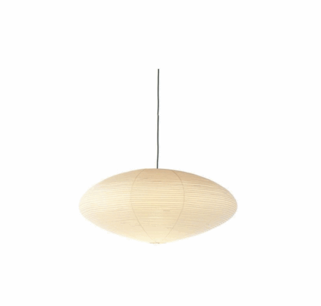 Les Akari Light Sculptures (1951) d’Isamu Noguchi (1951) sont une série de luminaires faits main en papier washi traditionnel par des artisans japonais. « La magie du papier retransforme l’électricité froide en la lumière originelle – le soleil. » (Noguchi)