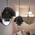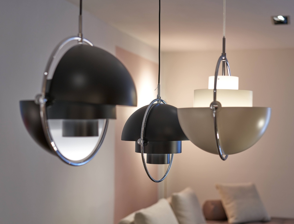 La lampe Semi Pendant est une lampe suspendue unique, basée sur deux quarts de cercle assemblés dos à dos. Son abat-jour en métal émaillé en forme d’arche crée une lumière diffuse en forme de cône, idéale au-dessus d’une table à manger ou d’un plan de travail dans la cuisine. Grâce à la légèreté de sa forme, à son design unique et intemporel et à sa gamme de couleurs et de tailles, la suspension Semi est extrêmement polyvalente et convient parfaitement aux espaces privés et publics. La suspension Semi a été conçue en 1968, fruit du partenariat créatif entre Claus Bonderup et Torsten Thorup. En réaction contre les formes organiques douces, l’ère dite « cosy », qui dominait le Danemark à l’époque, Bonderup et Thorup voulaient créer une lampe aux lignes nettes et précises et aux formes géométriques. Leur projet a été soumis à un concours de l’Académie royale danoise des beaux-arts, école d’architecture, et a remporté le premier prix. Dans les années 1980, la suspension a connu un grand succès et est devenue, à l’époque, la lampe danoise la plus vendue et a acquis une reconnaissance mondiale et un statut d’icône.