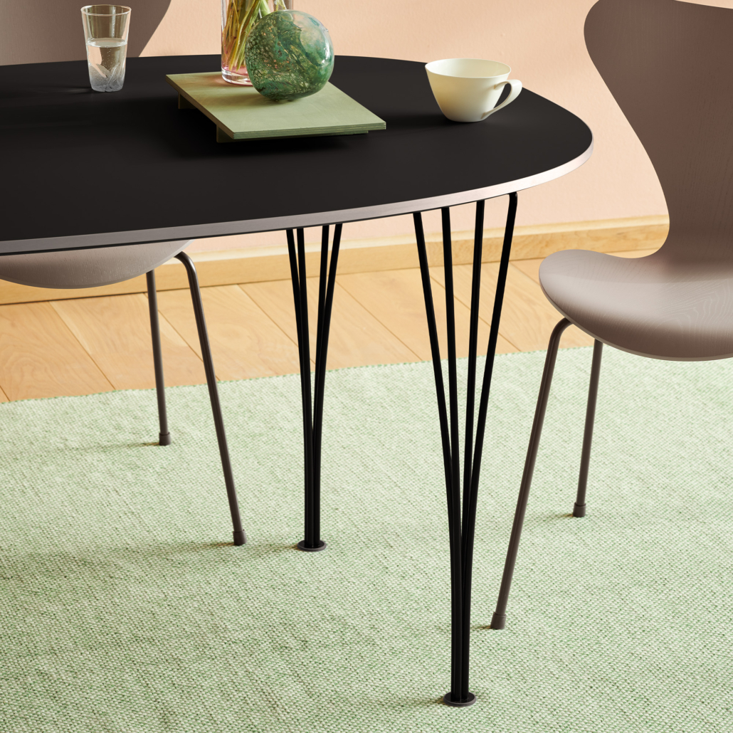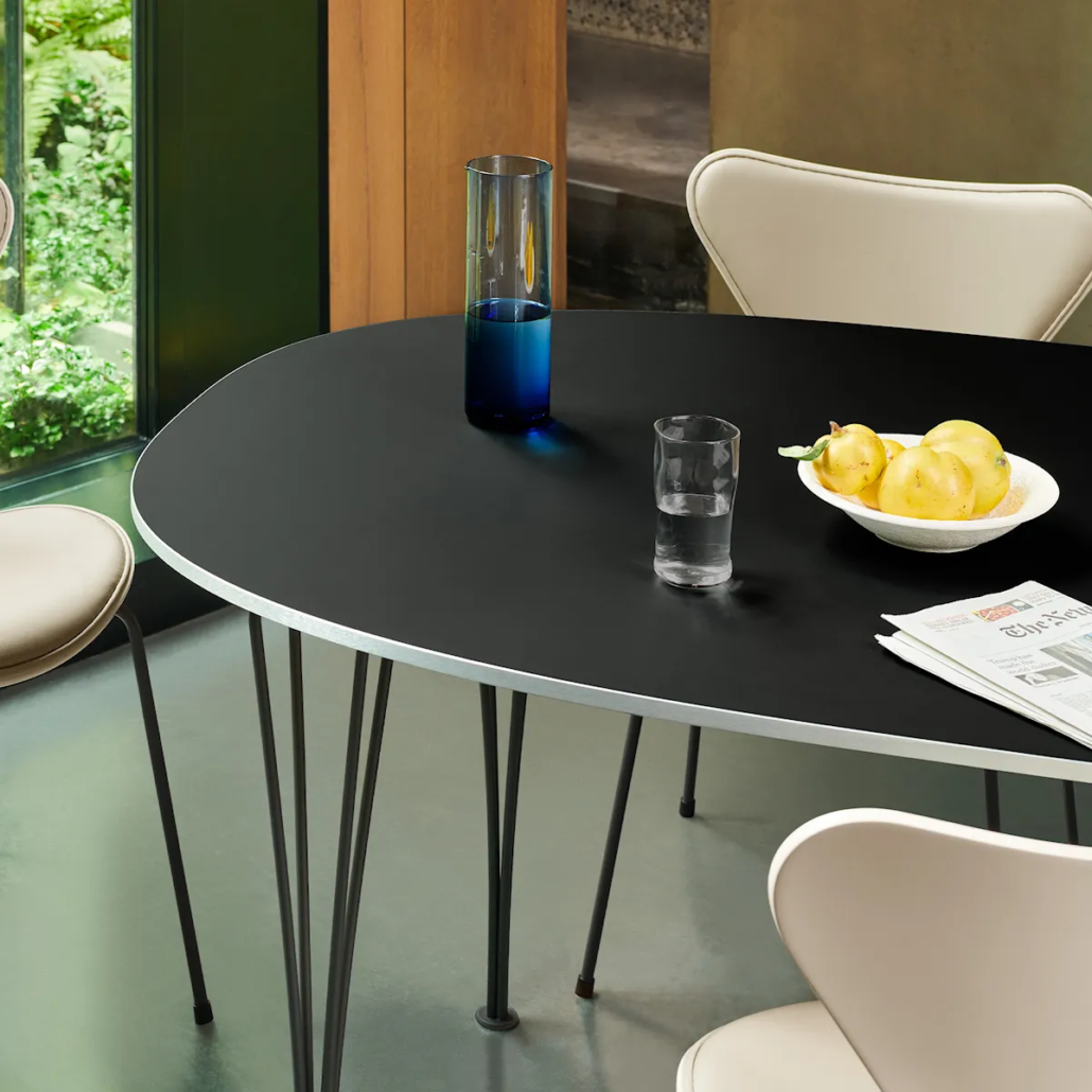 L’inspiration derrière Superellips provient de la solution ingénieuse trouvée par Piet Hein pour résoudre un problème de circulation sur la place Sergels à Stockholm : un rond-point super-elliptique. Superellips est devenue l’une des tables les plus célèbres de Scandinavie et une véritable icône du design signée Fritz Hansen.