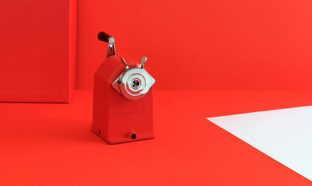 Caran d’Ache propose désormais, dans sa collection standard, l’emblématique machine à tailler en rouge, couleur signature de Caran d’Ache.