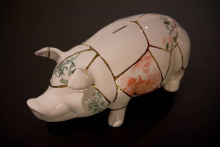 Véritable trublion, le designer Marcantonio prend l’expression ‘’casser sa tirelire’’ au pied de la lettre ! Cette tirelire en porcelaine en forme de cochon présente un aspect fissuré de toutes parts. Comme si, après avoir l’avoir cassée, on avait recollé les morceaux. Cet effet s’inspire du Kintsugi, une méthode ancestrale japonaise de réparation des porcelaines et céramiques brisées avec des soudures à l’or. Tous les détails dorés sont réalisés avec de l’or véritable 24 carats.