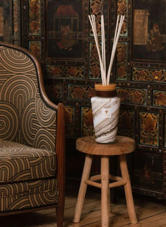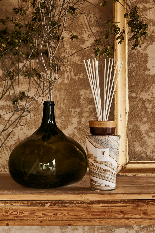 Le diffuseur de parfum d’intérieur Totem Siloli, décliné en 2 litres et 5 litres est terminé d’un bouchon en céramique artisanale brun et beige assorti aux couleurs du verre. Il s’installe dans un intérieur comme un objet de décoration unique et rechargeable.