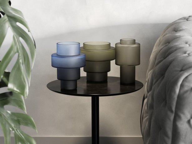 Cette série de vases, qui gagnera à être mise en scène comme une installation de plusieurs pièces créatives colorées, nous renvoie à une extrême simplicité et une intemporalité qui portent en elles avec humilité et sagesse l’inspiration du designer et le savoir-faire exact du verrier.