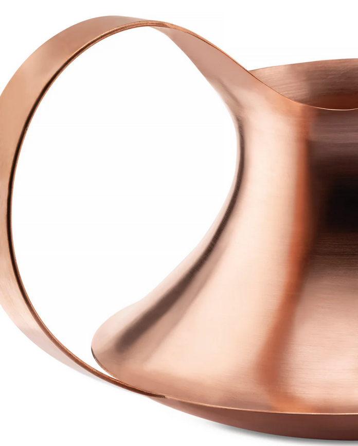 Iachetti a conservé la forme originale de deux cônes opposés et empilés et a travaillé sur le dessin des deux anses caractéristiques pour créer une seule ligne courbe qui trace l’ensemble de l’objet.