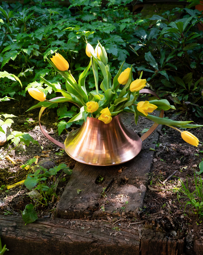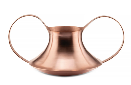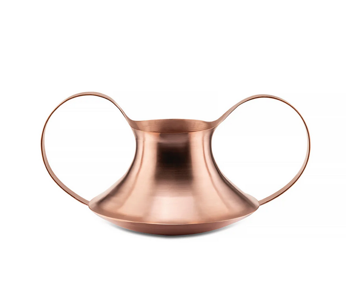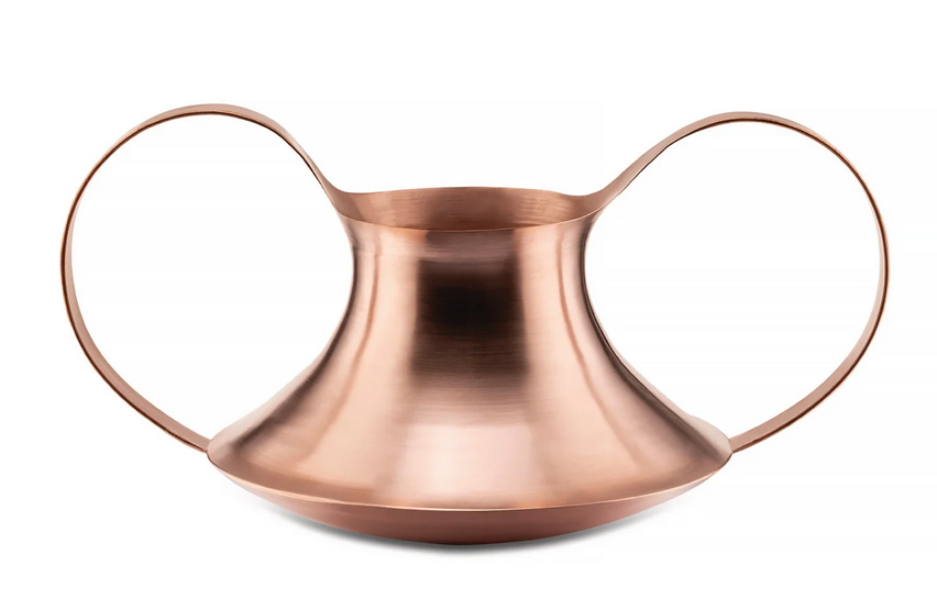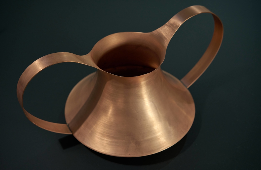 Vase/ récipient avec anses en plaque de cuivre tournée.