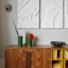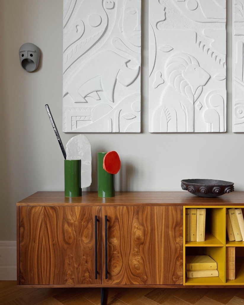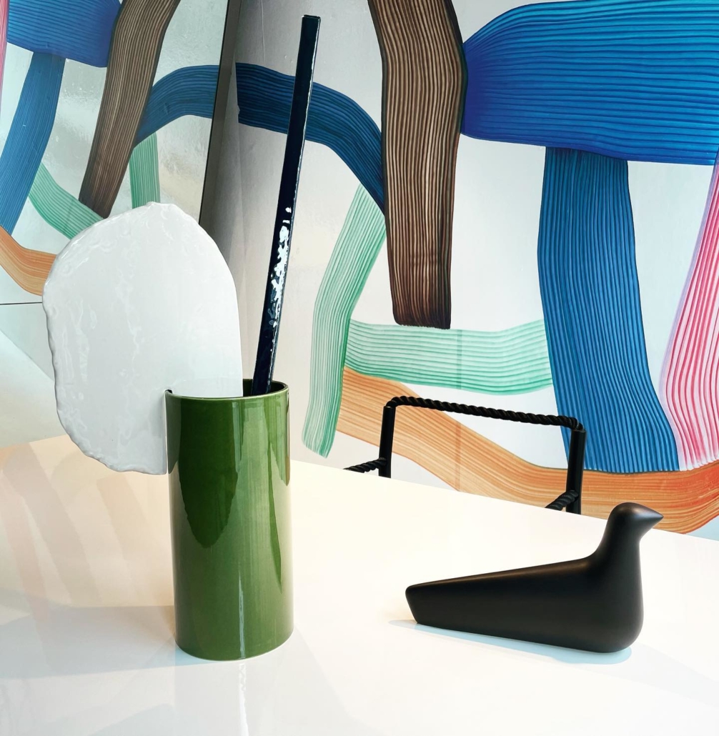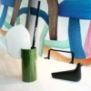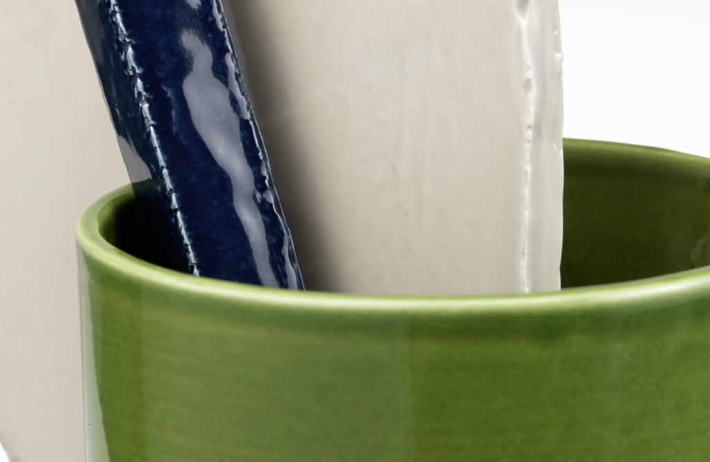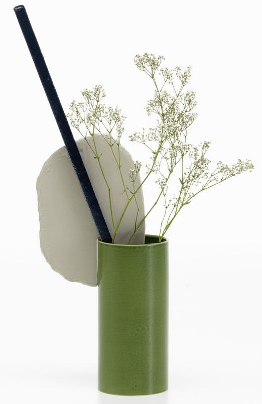 Les Vases Découpage (2020) teints à la main de Ronan et Erwan Bouroullec sont des compositions poétiques et fantaisistes formées de cylindres, de plaques et de barres façonnés en argile.