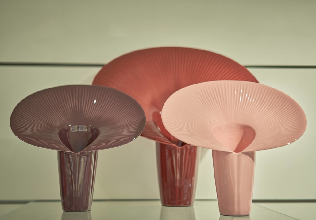 Fusca est une collection de vases voluptueux, aux lignes organiques et aux finitions glorieuses. La forme évocatrice et le mouvement du col laissent libre cours à l’imagination, de la tenue de scène d’une diva à la crinière d’un lion ou à une fleur de calla.