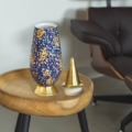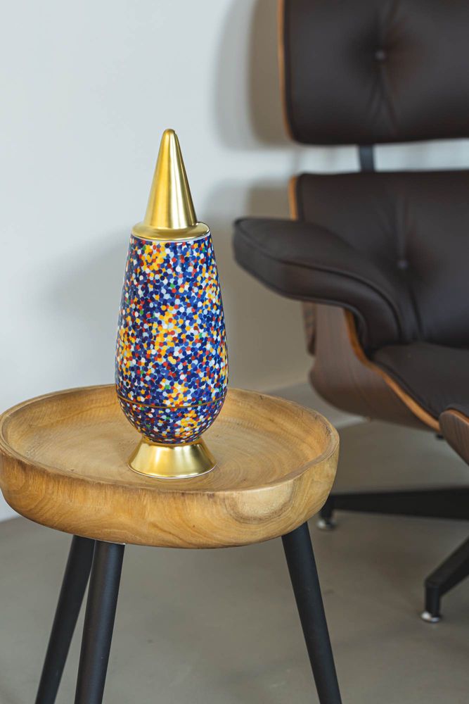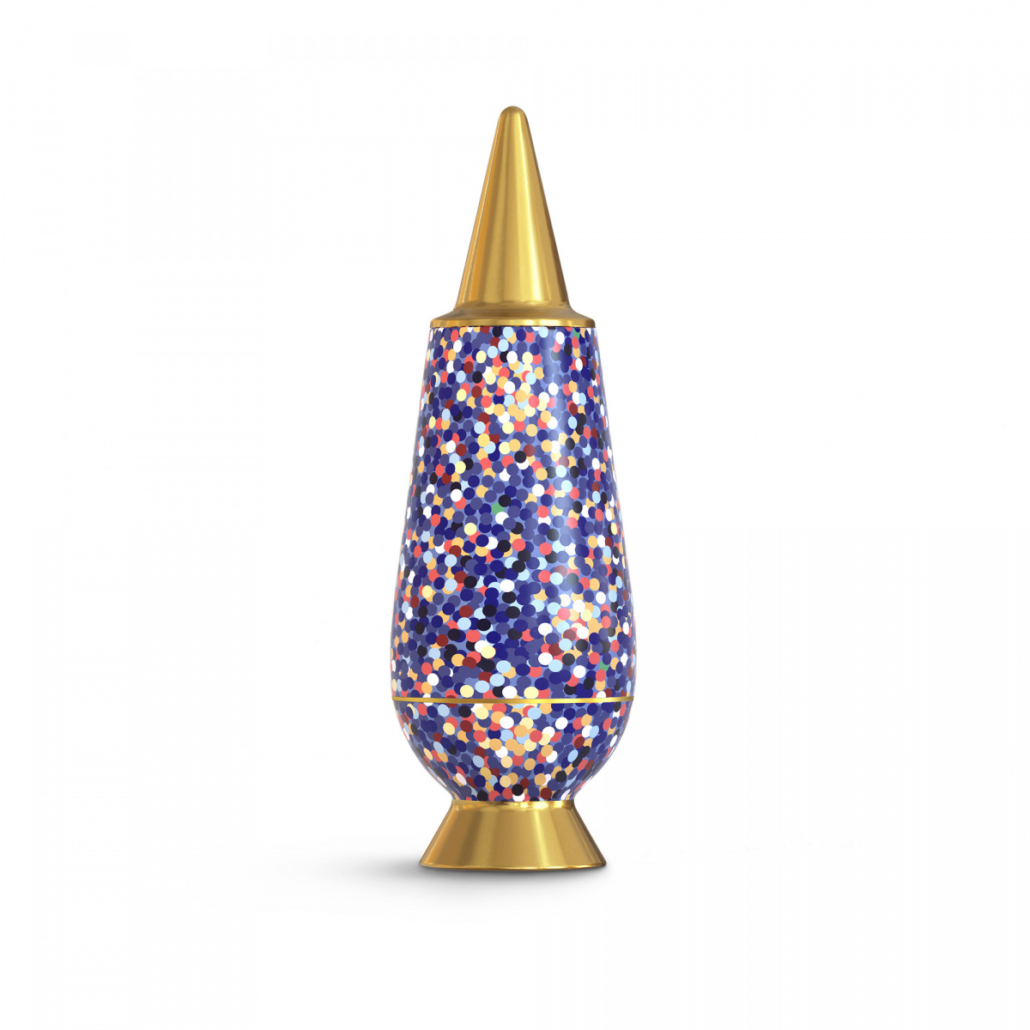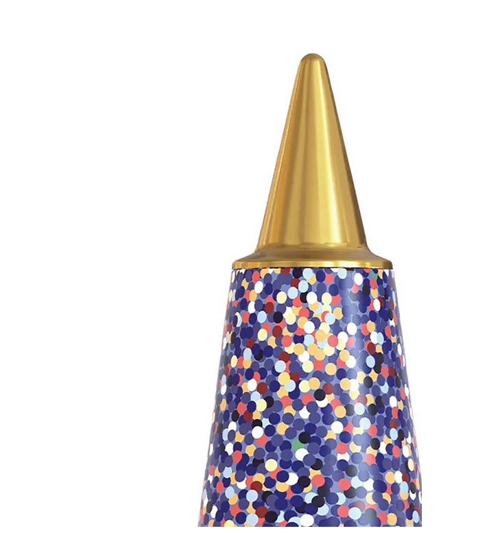 Apportez une magnifique œuvre d’art chez vous avec ce vase Alessi 100% Make-Up Proust ! Le vase est en porcelaine blanche et se compose d’un corps cylindrique fermé en haut par un couvercle conique de couleur dorée. Le corps est décoré d’emblèmes appliqués pendant la cuisson.