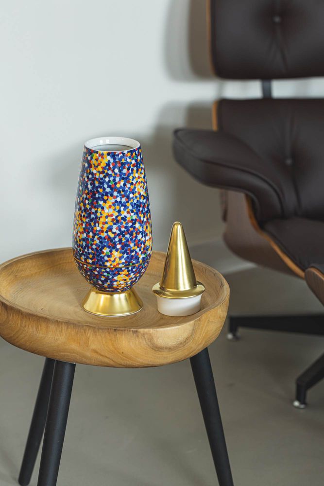 Le vase est fabriqué à la main, cuit et brossé à froid. En raison de la cuisson à haute température, chaque produit est unique. Le vase Alessi 100% Make-Up Proust est fabriqué en édition limitée à 999 exemplaires.
