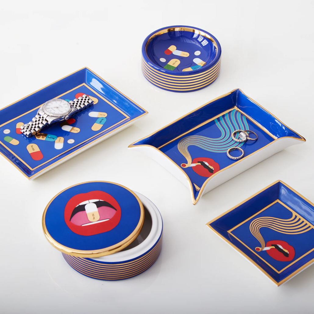 Porcelaine à haute température avec des accents bleus et dorés brillants